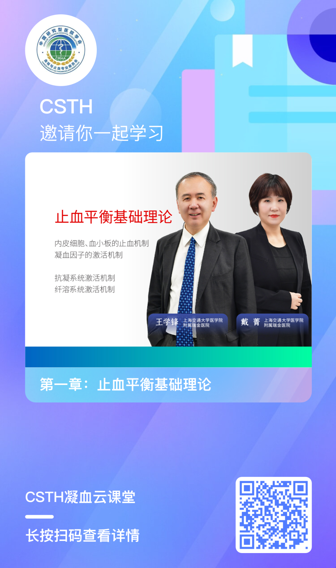 凝血云課堂是中國(guó)研究型醫(yī)院學(xué)會(huì)血栓與止血專業(yè)委員會(huì)打造的學(xué)習(xí)平臺(tái)。CSTH凝血云課堂集結(jié)了國(guó)內(nèi)眾多優(yōu)秀的凝血專家學(xué)者,系統(tǒng)地針對(duì)血栓與止血實(shí)驗(yàn)室相關(guān)檢測(cè)基礎(chǔ)理論、指標(biāo)、指南共識(shí)、儀器操作、案例等等各方面為大家傳道解惑,利用網(wǎng)課開設(shè)一系列專業(yè)系統(tǒng)的凝血繼續(xù)教育課程,對(duì)大家完全免費(fèi),幫助大家系統(tǒng)的了解和學(xué)習(xí)這門學(xué)科。