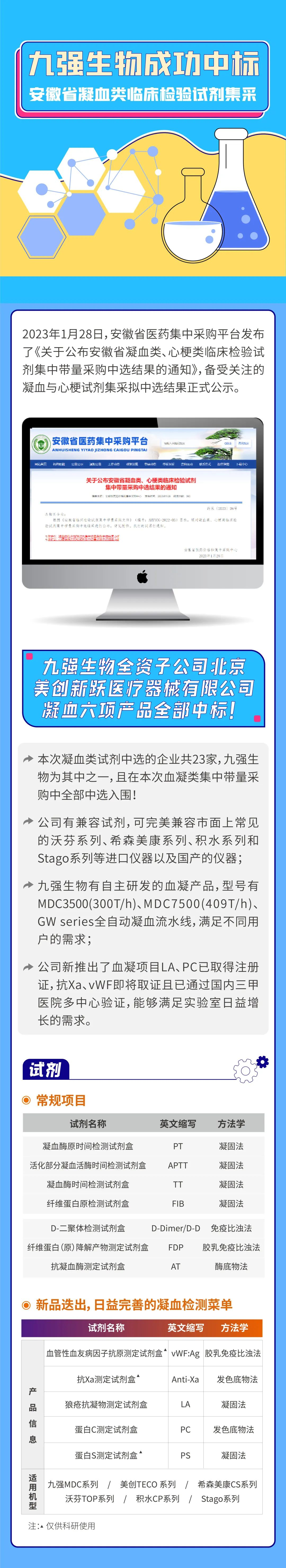 美創(chuàng)凝血六項全部中標!九強生物助力安徽省凝血類臨床檢驗試劑集采!
