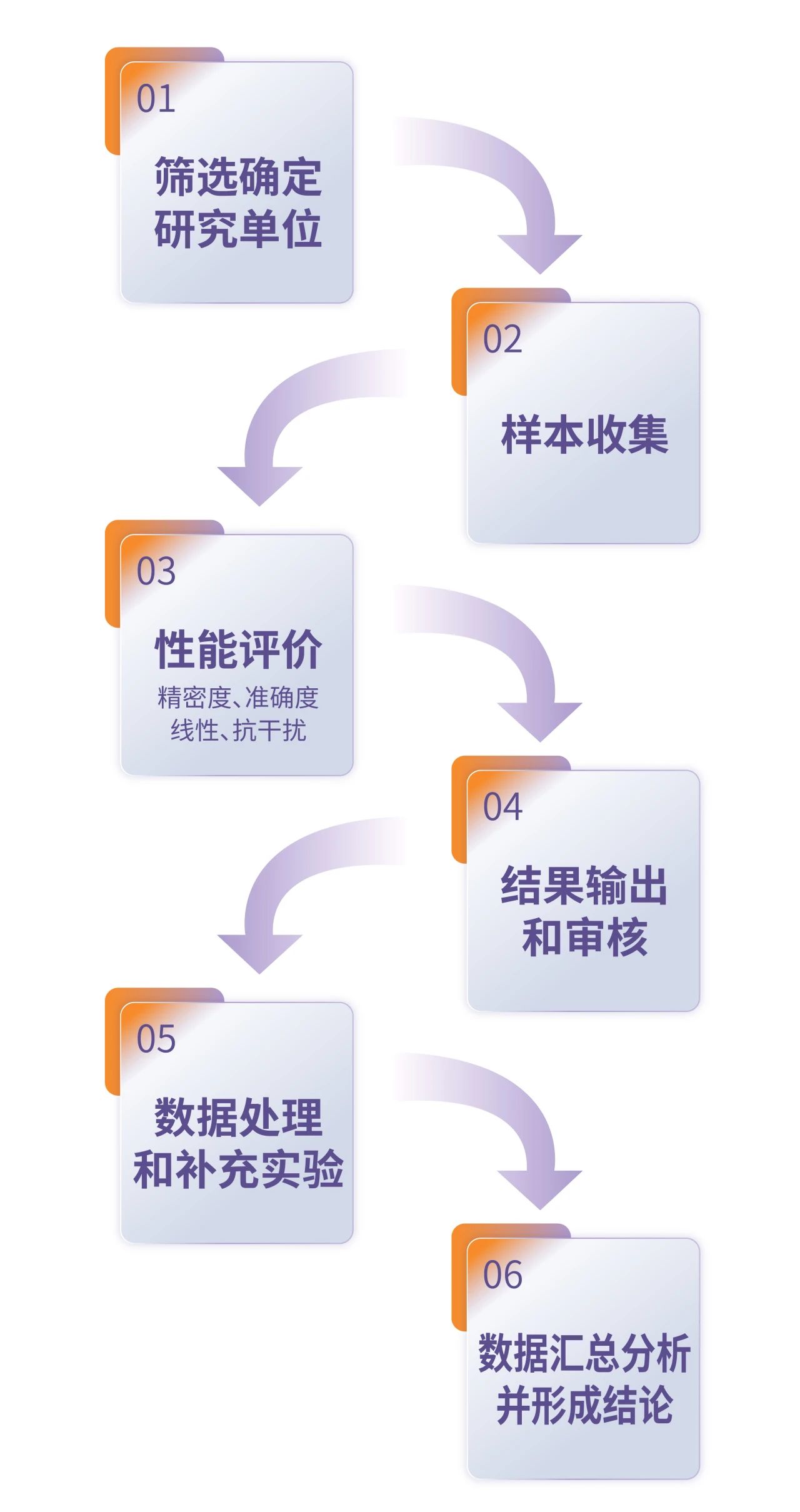 多中心性能驗(yàn)證,要求至少3家單位在規(guī)定時(shí)間內(nèi)、依據(jù)同一實(shí)驗(yàn)方案并使用相同批號(hào)試劑對(duì)項(xiàng)目性能進(jìn)行評(píng)估,最終匯總各單位檢測(cè)結(jié)果進(jìn)行比對(duì)及綜合評(píng)估。