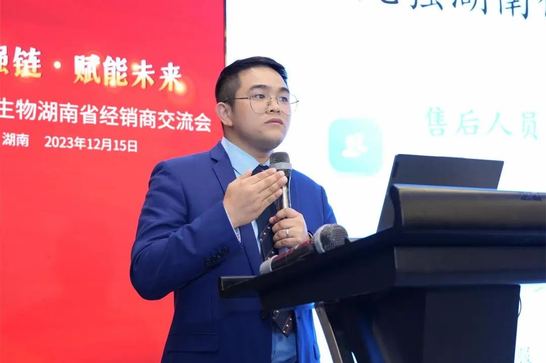 九強(qiáng)生物湖南省區(qū)總監(jiān)羅波先生針對湖南業(yè)務(wù)介紹及經(jīng)銷商發(fā)展策略進(jìn)行了細(xì)致的交流,就湖南目前情況、招商產(chǎn)品線與合作模式,帶來了非常精彩的內(nèi)容分享。