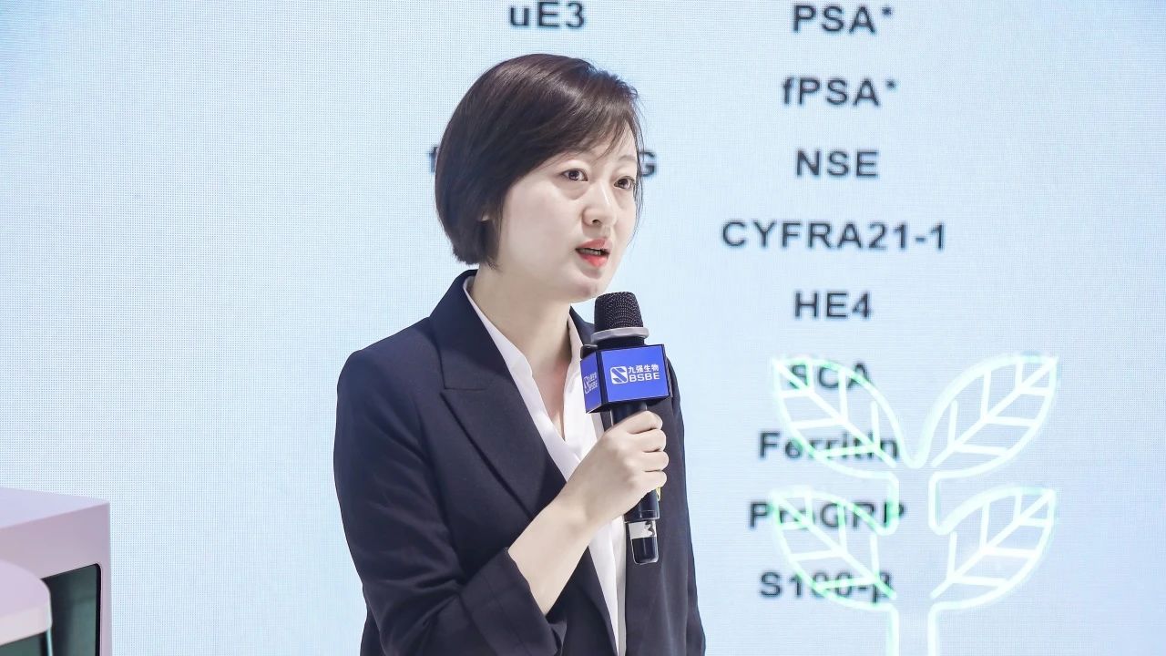 九強生物化學(xué)發(fā)光產(chǎn)品市場經(jīng)理王東旭女士圍繞化學(xué)發(fā)光檢測系統(tǒng)解決方案進行了非常詳細的講解。九強Gi發(fā)光擁有精準(zhǔn)、便捷、全面、節(jié)約等品質(zhì),成就精準(zhǔn)檢測。