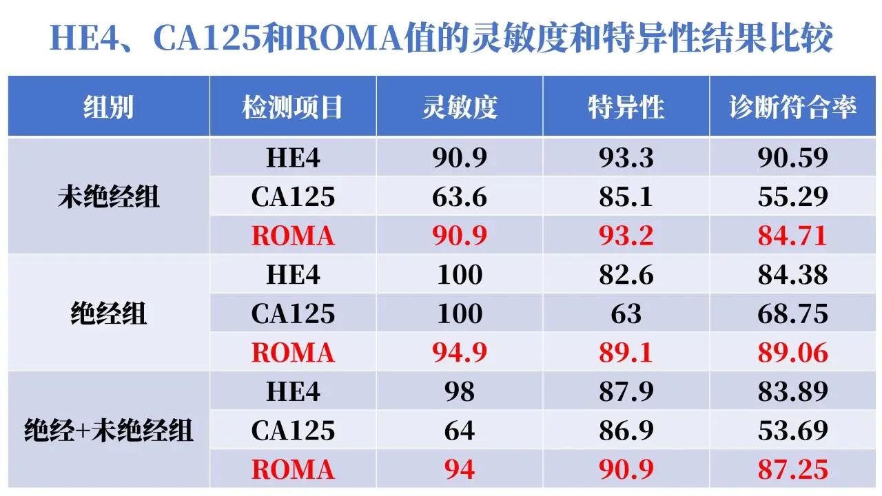 CA125聯(lián)合HE4可以減少30%-50%單一生物標志物陰性卵巢癌的漏診,改善卵巢癌診斷和治療監(jiān)測的敏感性。
