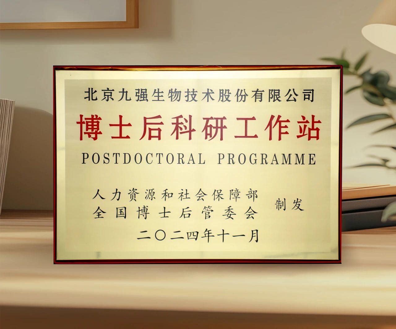2024年12月12日,北京市人保局組織的新設站培訓暨加強博士后人才培養(yǎng)、賦能中國式現(xiàn)代化建設大會在京召開,北京九強生物技術股份有限公司博士后科研工作站獨立建站獲批后在本次會議上被正式授牌。