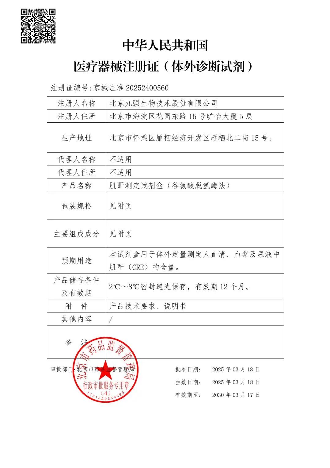 再添利器!九強(qiáng)生物肌酐測定試劑盒獲證!