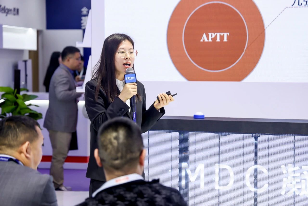 九強生物產(chǎn)品經(jīng)理劉云婷女士對MDC凝血家族進行了非常詳細的介紹與講解。高精度的凝血分析儀及流水線搭配靈敏的試劑,能夠快速、精準地剖析樣本,大大提升檢測效率。