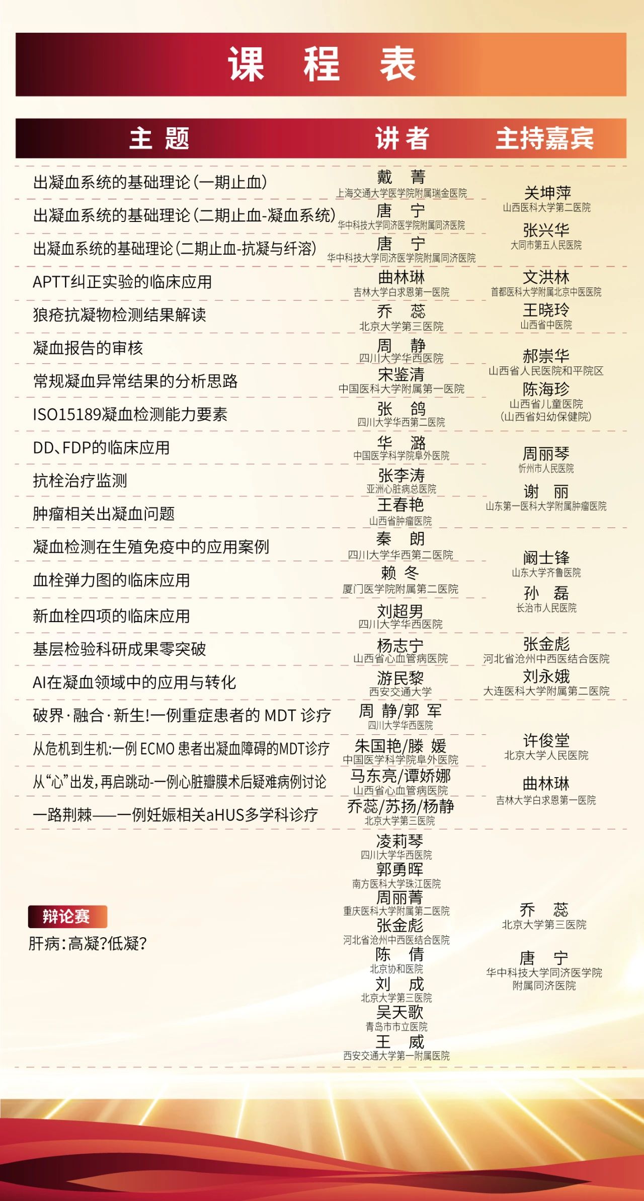 本次培訓邀請國內凝血領域知名專家授課,課程內容涵蓋出凝血系統(tǒng)基礎理論、多學科聯(lián)合診療(MDT)經典案例拆解,辯論賽以及AI在凝血領域的應用。
