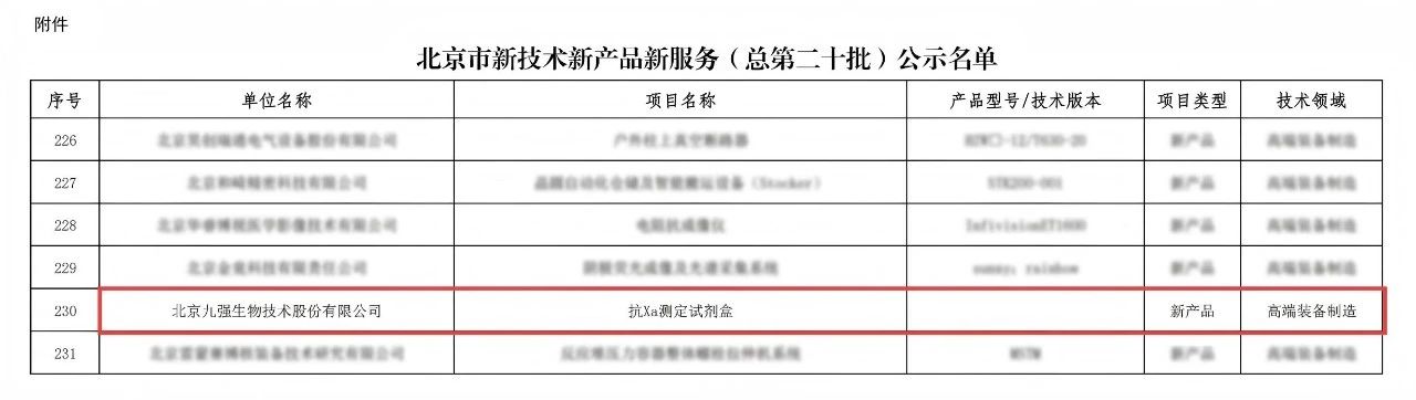 喜訊 | 九強(qiáng)生物抗Xa入選北京市新技術(shù)新產(chǎn)品新服務(wù)名單