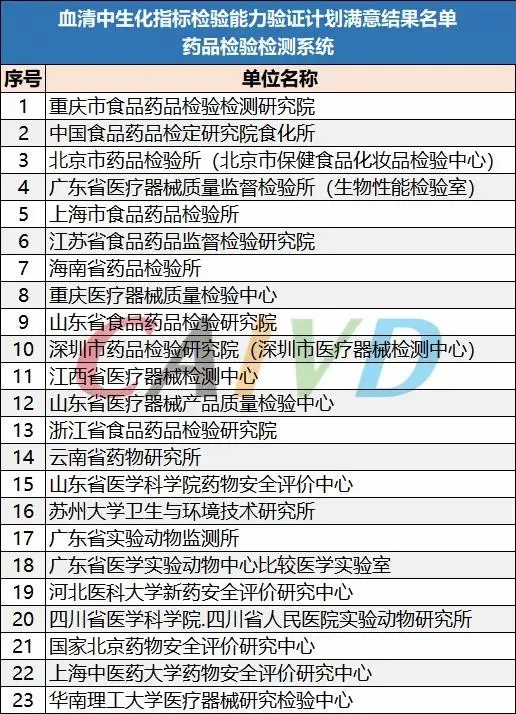 按照《國家藥監(jiān)局綜合司關(guān)于印發(fā)2020年藥品檢驗(yàn)?zāi)芰︱?yàn)證計(jì)劃的通知》(藥監(jiān)綜科外〔2020〕86號(hào))規(guī)定,現(xiàn)公布藥品監(jiān)管系統(tǒng)2020年檢驗(yàn)?zāi)芰︱?yàn)證結(jié)果為“滿意”的機(jī)構(gòu)名單,其中涉及檢驗(yàn)醫(yī)學(xué)的名單如下: