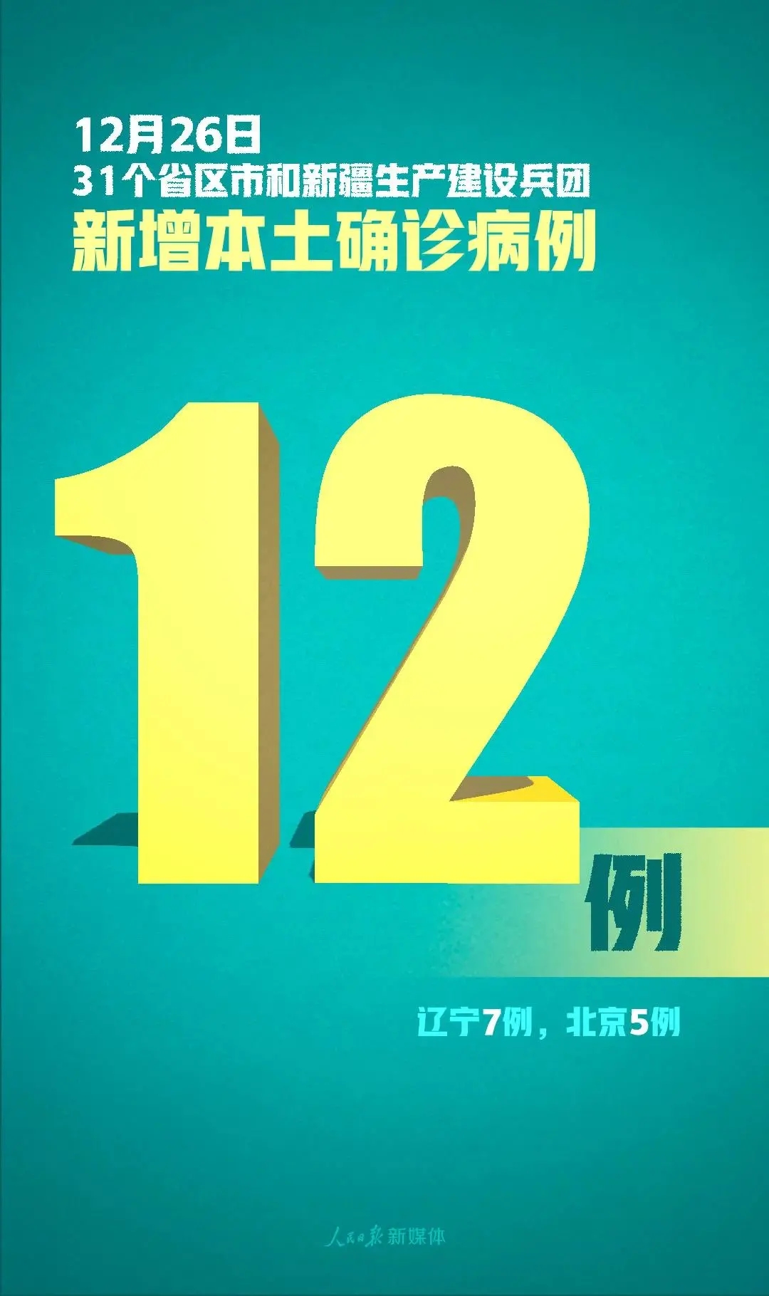12月26日0—24時,31個?。ㄗ灾螀^(qū)、直轄市)和新疆生產(chǎn)建設(shè)兵團(tuán)報告新增確診病例22例,其中境外輸入病例10例(上海4例,北京3例,浙江2例,安徽1例),本土病例12例(遼寧7例,北京5例);無新增死亡病例;無新增疑似病例。